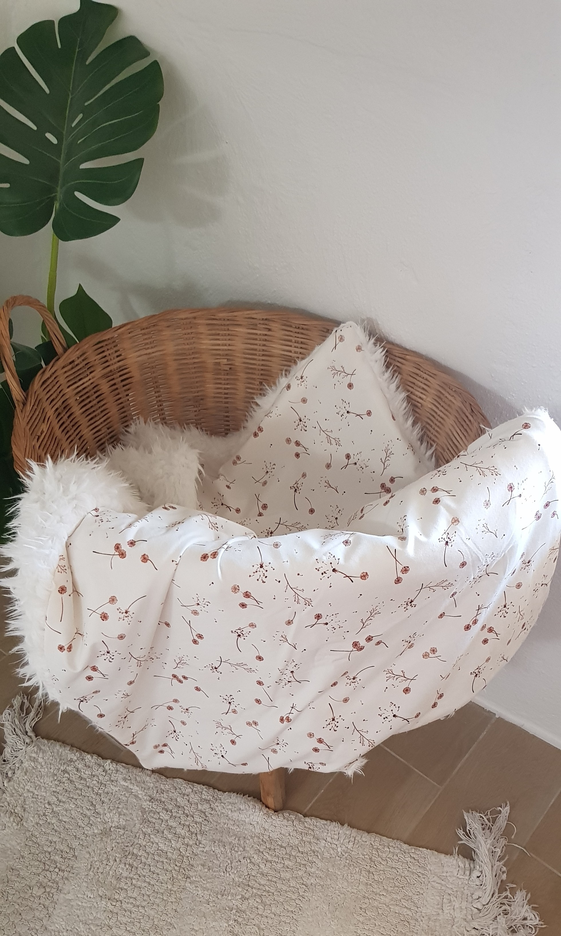 Couverture de dimension 70cmx100cm cherche son futur petit proprietaire. Le recto en jersey et verso fausse fourrure lama promettent des nuits douces et pleines de rêves.