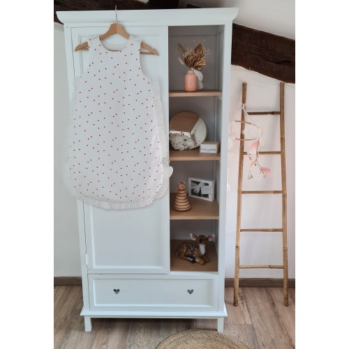 Ouvertures par zip sur toute la longueurs de la gigoteuse, et 2 boutons pressions sur les épaules.