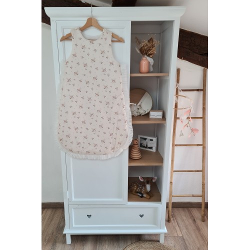 Ouvertures par zip sur toute la longueurs de la gigoteuse, et 2 boutons pressions sur les épaules.